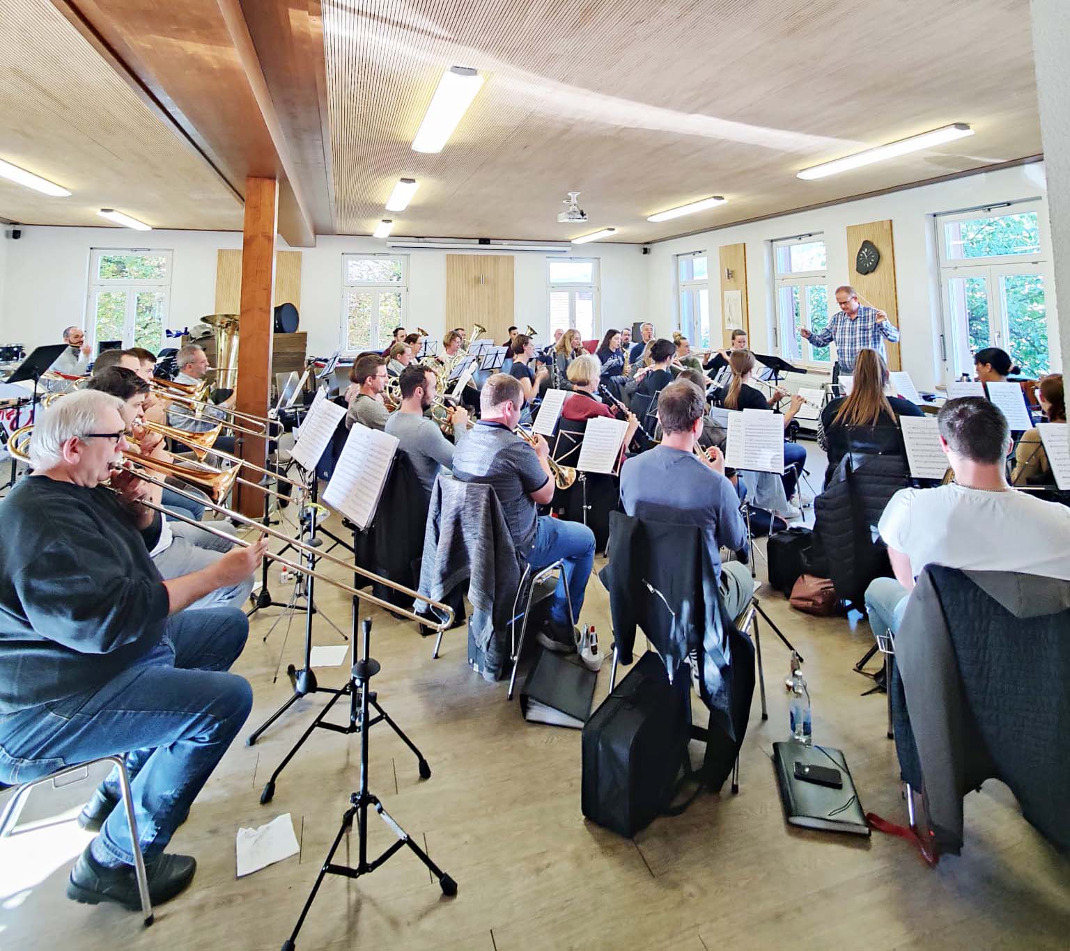 Am Sonntagmorgen begann die heiße Phase des Probewochenendes. Es wurden beinahe alle Stücke durchgespielt, um zu einer ersten Bestandsaufnahme zu kommen. Der Eindruck: Die Musikerinnen und Musiker unter der Leitung von Dirigent Stefan Polap sind auf einem guten Weg zum diesjährigen Jahreskonzert. Weitere Proben und Satzproben sind bereits geplant, damit einem anspruchsvollen Konzert nichts mehr im Wege steht.