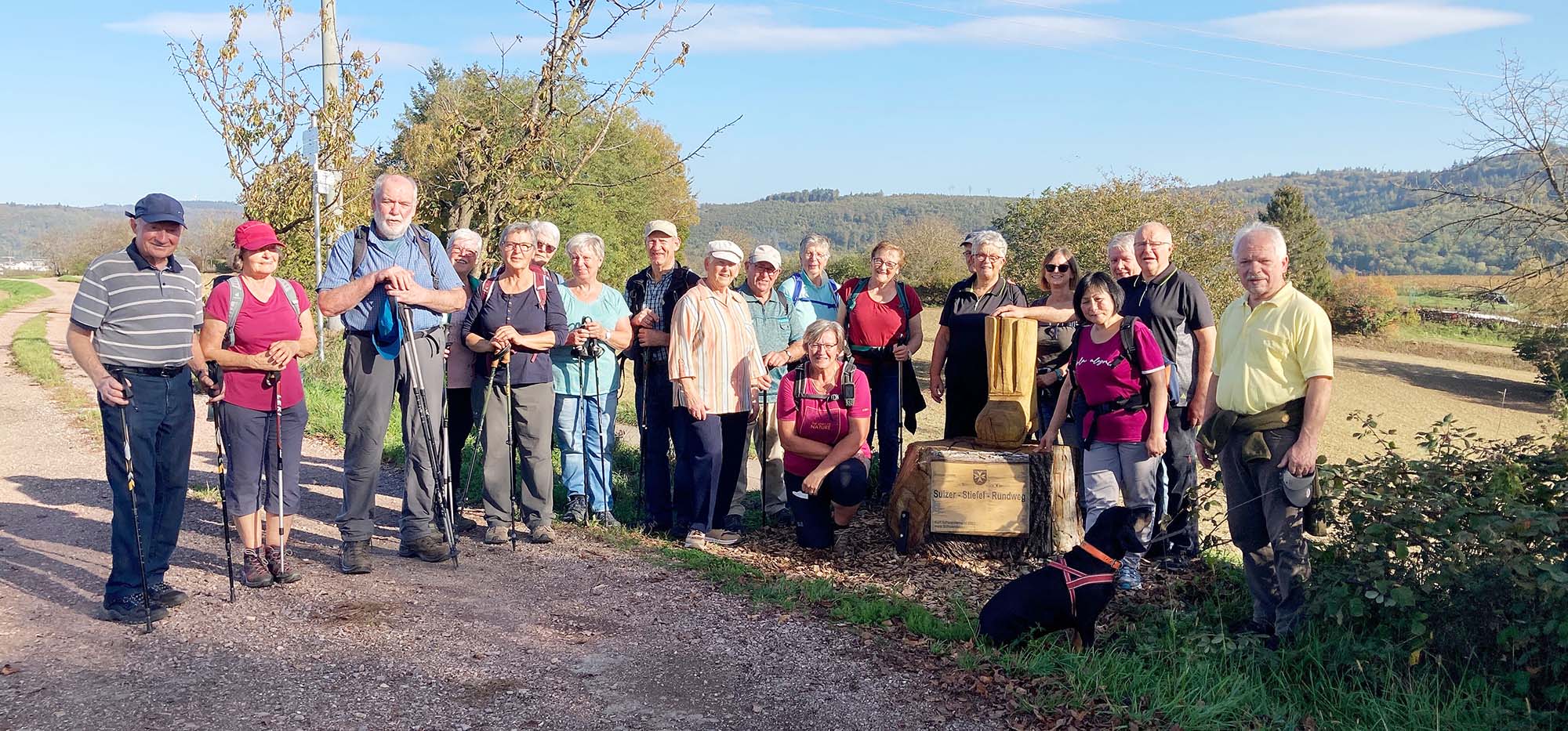 Von dort fuhr man in Fahrgemeinschaften nach Lahr-Sulz. Ein interessanter und abwechslungsreicher Rundweg lag vor der Wandergruppe, der Startpunkt war 100 Meter vom Sulzer Rathaus entfernt. Der Weg führte durch den Wald, eine geschützte Löss-Hohlgasse und Weinberge. An den Rebstöcken hingen noch jede Menge der sogenannten »Winterhuzeln«, die zum Naschen einluden. Immer wieder wurde die Wandergruppe mit herrlichen Aussichten belohnt. Einmal war es der Blick nach Lahr, dann in Richtung Mietersheim, dann eine herrliche Aussicht in die Rheinebene und in das sagenhafte Sulzbachtal. Dann wieder ein herrlicher Blick vom Bühl auf Sulz und zum Langenhard. Ein wirklich aussichtsreicher Wanderweg mit moderaten Höhenmeter. Zum Abschluss kehrte die Wandergruppe in Becks Vesperstube unterhalb der Burg Geroldseck ein. Ein toller Abschluss an einem wunderbaren Herbsttag