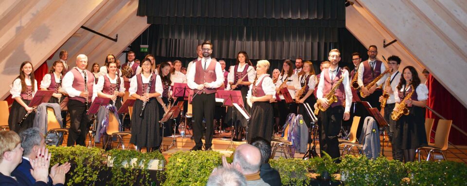 »Wir freuen uns von Herzen – und das ist keine Standardfloskel – dass wir unser Jahreskonzert wieder durchführen können«, versicherte Florian Berger. Und er freute sich, dass unter den über 50 Aktiven auf der Bühne neun Nachwuchsmusikerinnen und -musiker die Kapelle verstärken. »Newcomer« in Unterentersbach ist auch Daniel Faist. »Wir sind froh, dass wir mit ihm einen kompetenten, engagierten und jungen Dirigenten haben, der die Aktiven fordert und fördert«, zeigte sich Vorstand Florian Berger dankbar.