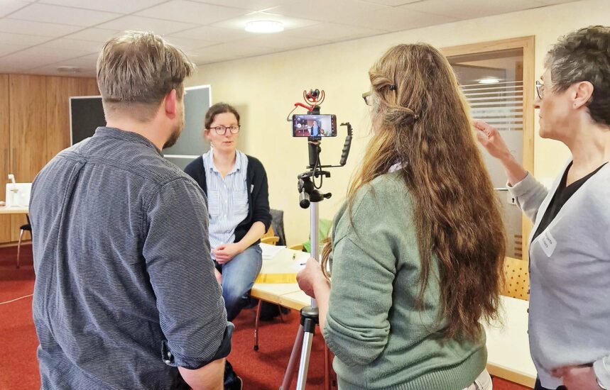 Mit dem eigenen Smartphone und einem professionellen Stativ durften die Teilnehmerinnen die ersten eigenen Videos drehen. Manche schon erfahrene Frau konnte sich die letzten Tipps holen.