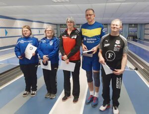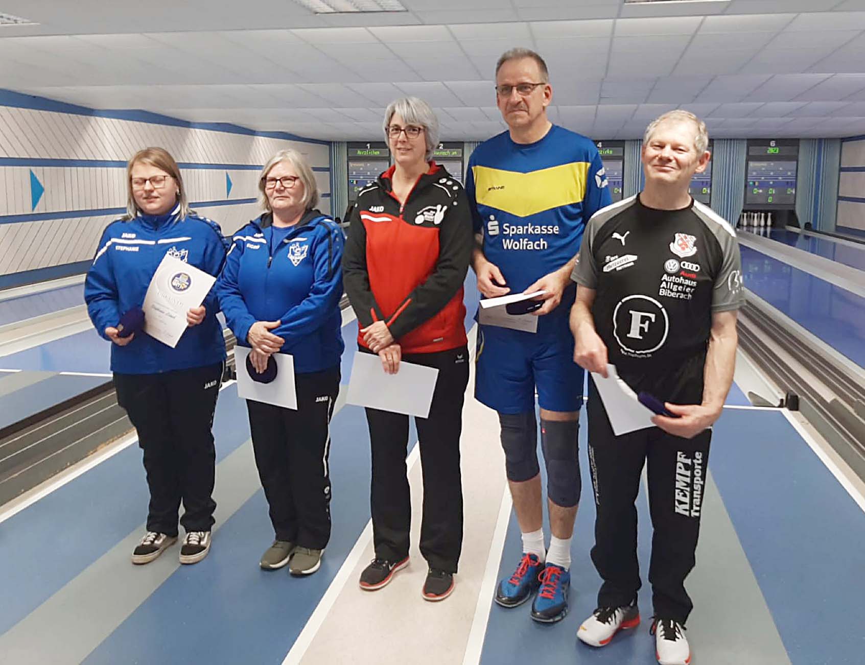 Bei den Senioren B wurde Gerhard Schöner mit 1176 Kegel Bezirksmeister. Hermann Vollmer (KSC Önsbach) kam mit 1.141 Kegel als zweiter ins Ziel. Heiß umkämpft war der dritte Platz, gleich von sieben Keglern. Durchgesetzt hat sich Hagen Neumann (SG Wolfach/ Oberwolfach) mit 1.128 Kegel. Der Unterharmersbacher Franz Dörr und Günter Teufel (SKC Schrezheim/Helmlingen) mit jeweils 1.125 Kegel und Sönke Wagner (SKC 86 Schapbach) mit 1.124 Kegel schrammten von den weiteren wegen einem beziehungsweise zwei Kegel am Podest vorbei.