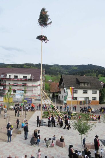 Am Sonntag wurde der Maien von der Zimmerei Gottfried Lehmann auf dem Rathausplatz aufgestellt. Die Musikkapelle Unterharmersbach unter Leitung von Patrick Friedmann spielte zur Unterhaltung auf. Der Förderverein des FVU sorgte für Getränke und Imbiss.