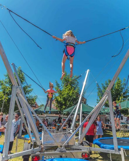 Von 11 bis 13 Uhr spielt die Musikkapelle Unterharmersbach auf der großen Bühne. Das war für die Musikerinnen und Musiker Ehrensache, wie TVU-Vorstand Ludwig Börsig erzählt. Von 13 bis 17 Uhr steht dann das Kinderprogramm gratis allen offen, die es nutzen wollen. Der Turnverein baut viele spannende Spielstationen im Park auf, sie werden von den Übungsleiter*innen des Turnvereins betreut. Als besondere Attraktion wird sogar eine „Bungee-Trampolin-Anlage“ die Kinder begeistern. Sie kann ebenfalls gratis benutzt werden. Es gibt Vorführungen von Kindergruppen im Musikpavillon und „Felix der Glückliche“ sorgt mit Life-Musik für gute Unterhaltung. „Es sind alle auf den Beinen“, freut sich Börsig schon auf den 9. Juli. Um die 100 Leute seien involviert, um den Tag für die Besucher bestens zu gestalten.