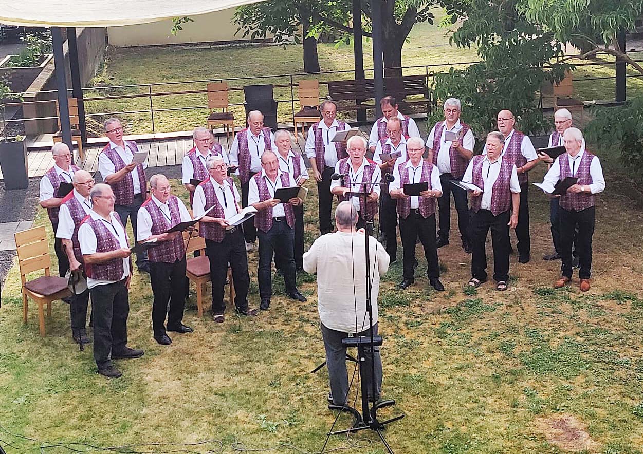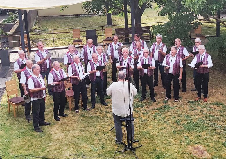 Der Männerchor des MGV Unterharmersbach erfreut in diesem Sommer die Bewohnerinnen und Bewohner von Seniorenheimen mit kleinen Konzerten, gespickt mit bekannten Volksliedern.