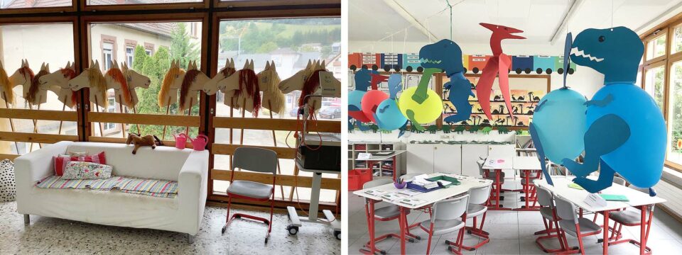 Viel Material wurde verarbeitet, es wurde gemalt, gesägt, geschnitten, gespielt und auch kleine Ausflüge wurden unternommen. Eindrücklich zeugten in einer Ausstellung pünktlich zum Schulfest viele Bilder und Werke von der Arbeit der vergangenen Tage.