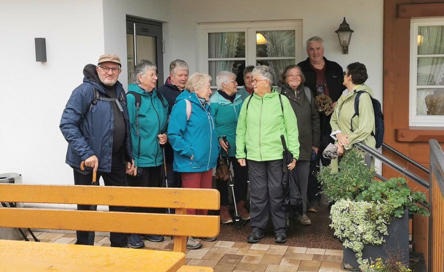 Über Regele und Meisengründle wanderten sie zur Hark. Die Sonne zeigte sich, aber auch der Regenschirm wurde gebraucht. Nach einer gemütlichen Einkehr ging es zur Harkhöhe und über den Mittleren Weg zum Ausgangspunkt zurück.