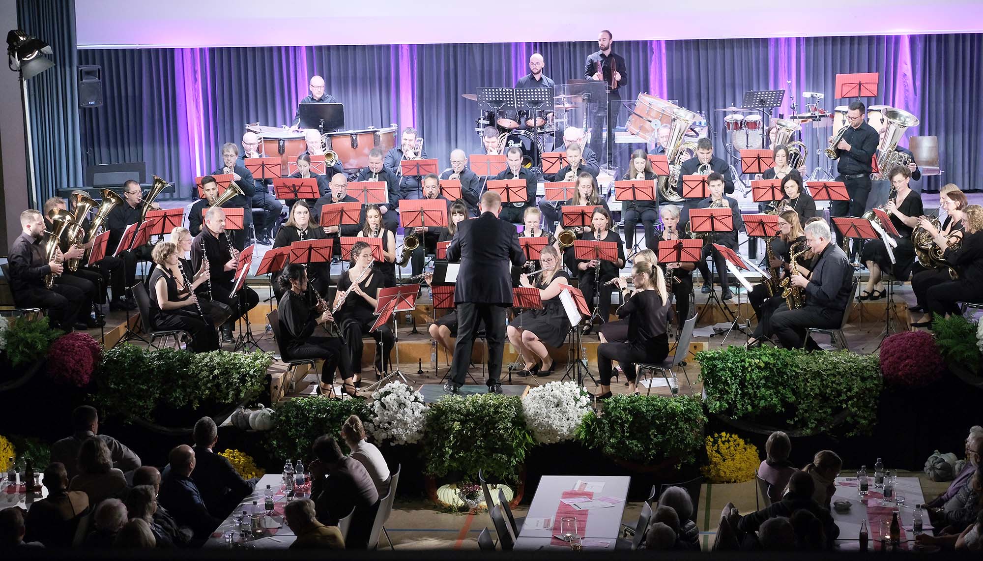 Der Konzertabend selbst begann mit einem Paukenschlag: „Another Opening“ von Fritz Neuböck ist ein schwungvolles Stück, das technisch anspruchsvoll und dennoch leicht und heiter ist. Ein furioser Start in den Abend, bei dem die verschiedenen Instrumente in einen beschwingten Dialog traten. Neuböck hat eine Vielzahl von Werken für Blasorchester komponiert, mit diesem Stück wollte er die Fortschrittlichkeit in der Blasmusik betonen. „Tradition bewahren heißt ja nicht, die Asche zu hüten, sondern das Feuer weiterzutragen,“ sagte er. Wie wahr.