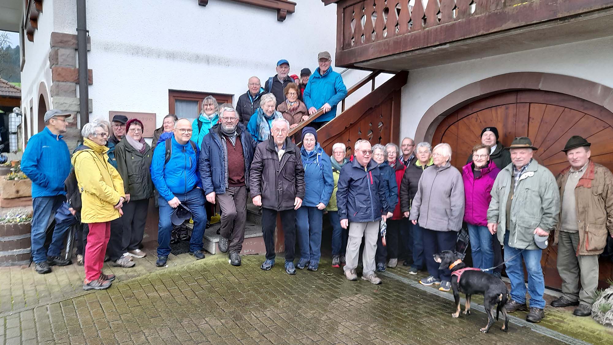 Am 29. Dezember trafen sich 33 Senioren am Adler-Wanderparkplatz. Leider hatte es der Petrus nicht gut gemeint und es regnete leicht. Über den Panoramaweg führte die Tour nach Grün. Dort überquerten man die Talstraße und wanderte weiter über den Fahradweg zu einem Bauernhof. Dort wurden die Wanderer mit Kaffee und Kuchen erwartet.