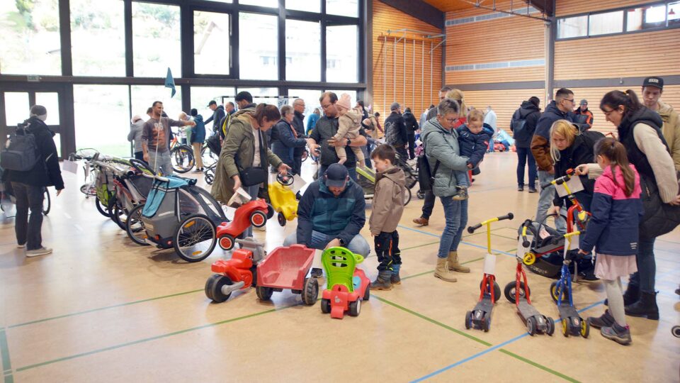 Als sich am Samstagnachmittag pünktlich um 14 Uhr die Türen zur Schwarzwaldhalle öffneten, waren dort Kinder-Fahrzeuge aller Art fein säuberlich aufgereiht und mit hand geschriebenen Preisschildern ausgezeichnet. Viele Eltern mit ihren Kindern und auch Großeltern drängten sich in die Ausstellung.