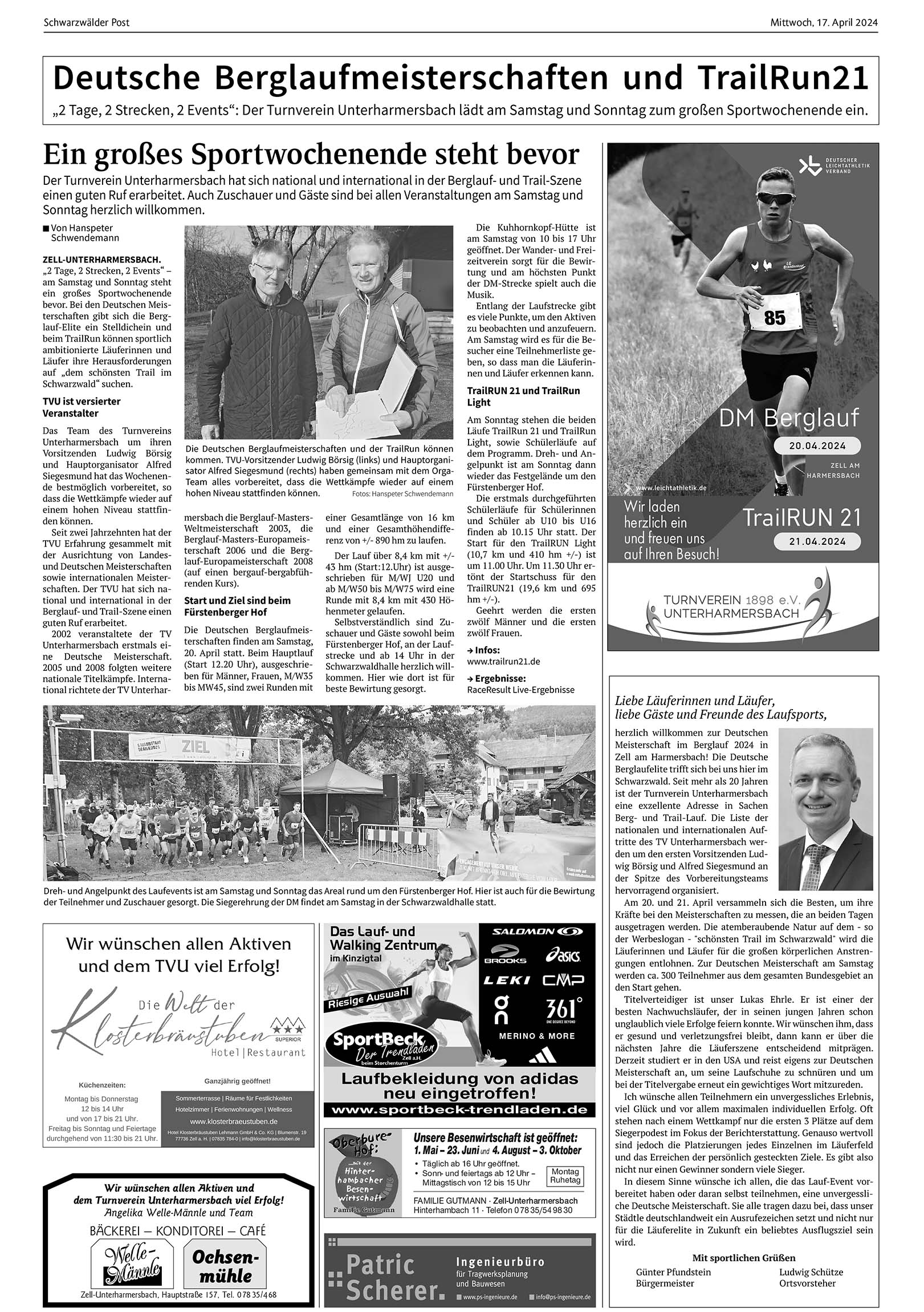 Dreh- und Angelpunkt des Laufevents ist am Samstag und Sonntag das Areal rund um den Fürstenberger Hof. Hier ist auch für die Bewirtung der Teilnehmer und Zuschauer gesorgt. Die Siegerehrung der DM findet am Samstag in der Schwarzwaldhalle statt. Foto: Hanspeter Schwendemann