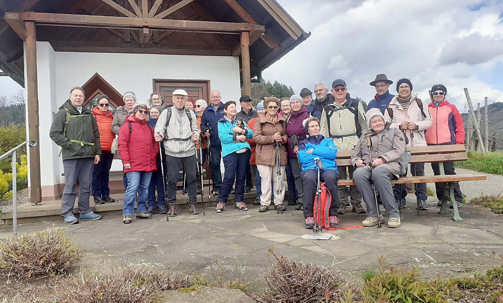 In Fahrgemeinschaften ging es zum Rathaus in Ohlsbach, dem Startpunkt der Tour. Nach einem Anstieg wurde die Kapelle „Maria im Weinberg“ erreicht. Hier wurde eine kurze Verschnaufpause eingelegt und die herrliche Aussicht in die Weinberge und ins Tal genossen. Danach wurde die Wanderung Richtung Bannwald und Schindelhofgraben fortgesetzt, bevor es über die Nothalde zum Ausgangspunkt zurück ging. Anscheinend haben die Senioren einen guten Draht zu Petrus, denn es hat während der ganzen Tour nicht geregnet. So konnte man zum gemütlichen Teil des Tages, zu einer geselligen Einkehr übergehen.