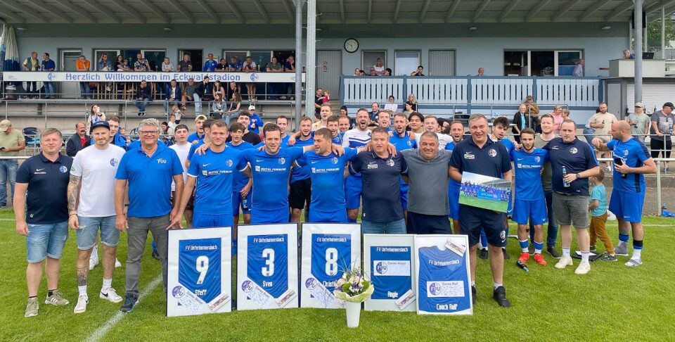 Für alle Verabschiedeten gab es gerahmte Trikots und Bilder als Erinnerung sowie großzügige Gutscheine als Präsent. Leisinger äußerte den Wunsch, dass sich alle weiterhin häufig im Eckwaldstadion sehen lassen und auch noch mal die Kickschuhe schnüren, wenn Not am Mann ist. Der Wunsch dürfte Gehör finden.