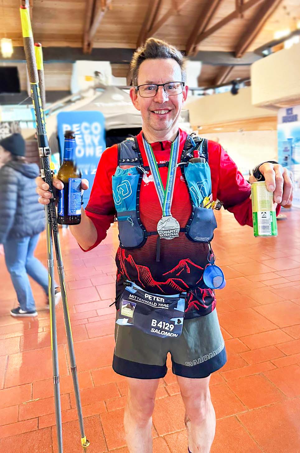 Peter Schobert, mittlerweile ein Dauerteilnehmer bei dem Laufevent, entschied sich für die Ultradistanz mit 44 km von Mittenwald mit dem Ziel Garmisch-Partenkirchen. Die Strecke führt vorbei an Schloss Elmau, hoch auf 2025 m Höhe zum Osterfelderkopf, anschließend mit technisch anspruchsvollen Downhill-Passagen zurück ins Tal. Dabei konnte er die herausfordernde Strecke mit 1.860 hm in nur 5:54:01 h absolvieren. In seiner Altersklasse Senior Master ordnete sich Schobert im vorderen Teilnehmerfeld ein und erzielte Platz 16.