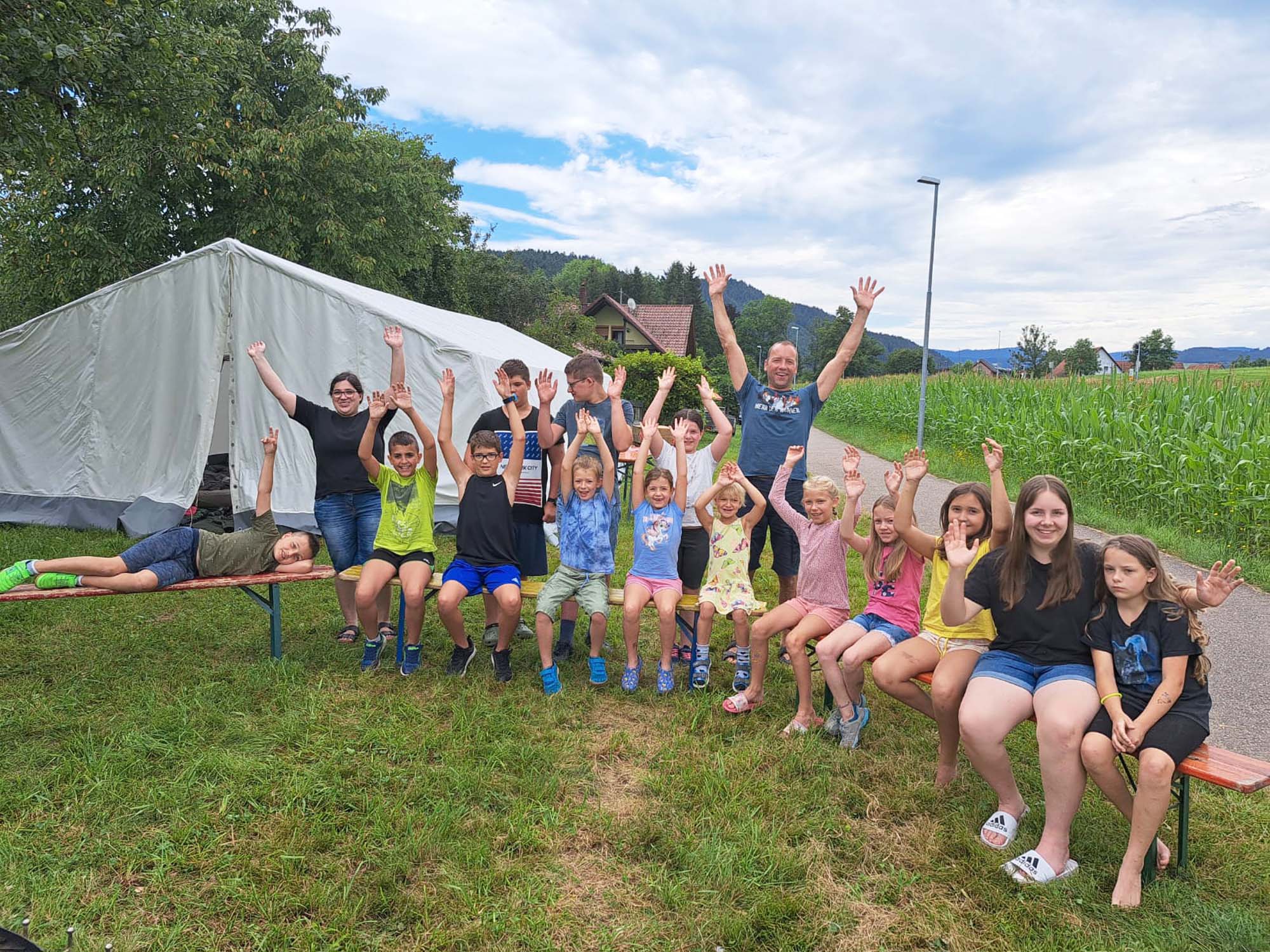 Vereinsjugend schlug bei der Kleintierzuchtanlage des Kaninchenzüchters Uli Welle in Unterharmersbach ihre Zelte auf.