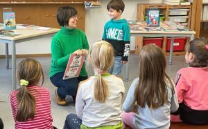 Mit Begeisterung stellte sie den Kindern eine bunte Auswahl an Geschichten vor – von humorvollen Erzählungen bis zu spannenden Abenteuern, passend für jedes Leselevel. Neben bekannten Titeln wie „Das Sams“ und „Die drei Fragezeichen“ gab es auch ein besonderes Zauberbuch zu entdecken, das die Gedanken der Zuhörer zu lesen schien. Vorlesebücher und Sachbücher durften bei der Bücherausstellung natürlich auch nicht fehlen.