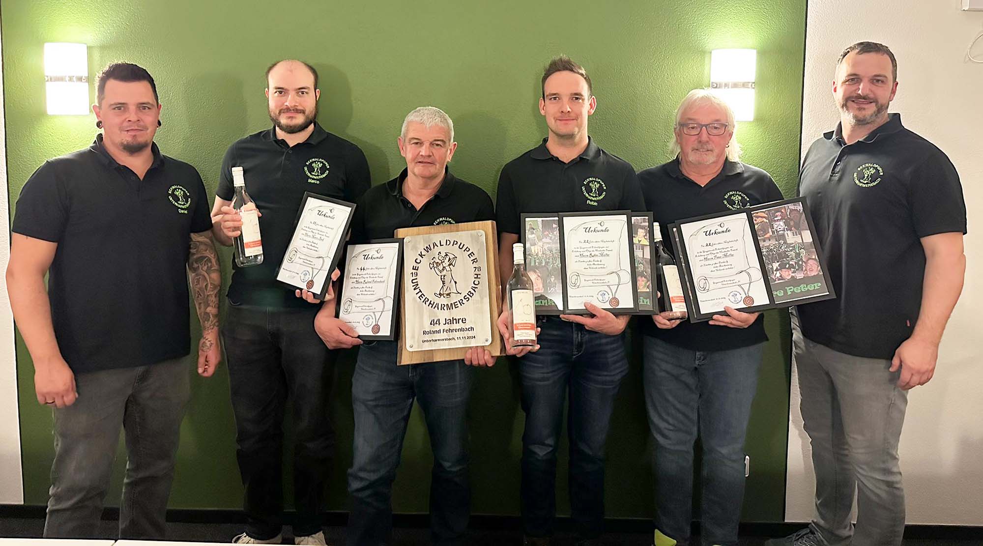 Marco Beck wurde für elf Jahre aktive Mitgliedschaft in der Guggemusik geehrt und erhielt eine Urkunde in Kombination mit einer Flasche Schnaps. Für 22 Jahre aktive Mitgliedschaft bedankt sich die Vorstandschaft bei Peter Müller und Robin Müller, welche eine Flasche Schnaps, eine Bilder-Collage und eine Urkunde erhielten. Günter Rauer wurde für 33 Jahre aktive Mitgliedschaft geehrt und erhält sein Präsent in einem separaten Termin. Für seine 44 Jahre in den Eckwaldpupern wurde Roland Fehrenbach mit einer Urkunde, einem gelaserten Schild auf Holz und besonders starkem Applaus der restlichen Mitglieder geehrt.
