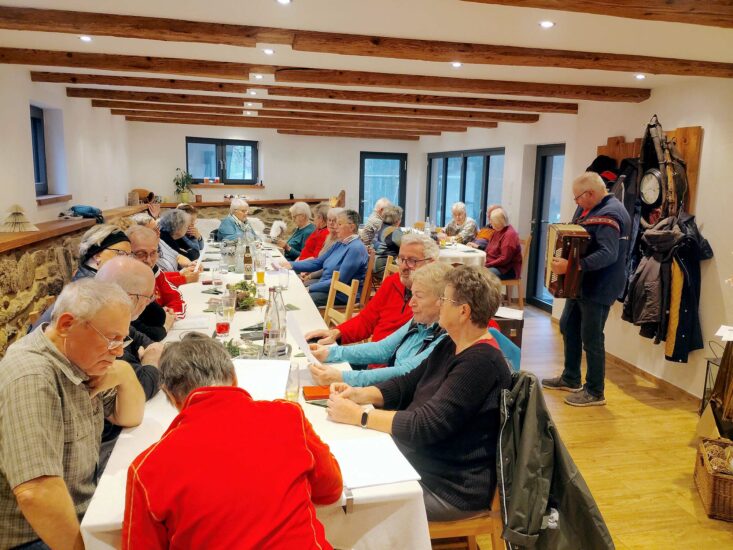 Nach der Ankunft starteten die Senioren eine kurze Wanderung, die schöne Ausblicke auf Welschensteinach bot. Die Route war angenehm und für alle problemlos zu meistern. Nach der Wanderung versammelten sich die Teilnehmer auf dem Ignatzhof zu einem gemütlichen Nachmittag. Zur Begrüßung gab es einen Schnaps, der die Stimmung gleich auflockerte. Anschließend genossen alle Kaffee und selbstgebackenen Kuchen, und die Stimmung wurde durch das Singen von Weihnachtsliedern noch festlicher. Begleitet wurden die Sänger von Herbert auf seinem Akkordeon. Natürlich kamen auch die Gespräche unter den Teilnehmern nicht zu kurz.
