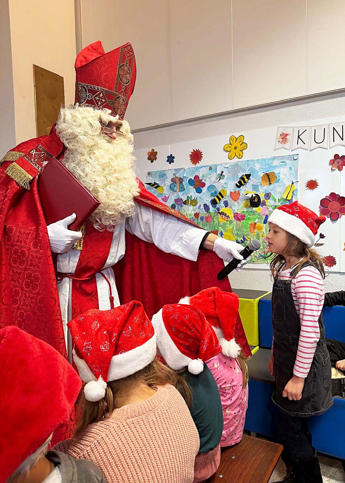 In seinem roten Buch hatte der Nikolaus so manche Beobachtungen über die Klassen notiert. Mit ruhiger Stimme mahnte er, zusammenzuhalten und sich gegenseitig zu helfen. Die Kinder bewiesen, dass sie sich gut vorbereitet hatten: Sie trugen Gedichte wie „Fragen an den Nikolaus“ und „Knecht Ruprecht“ auswendig vor und beeindruckten mit ihrem Wissen über die Legende des heiligen Nikolaus.
