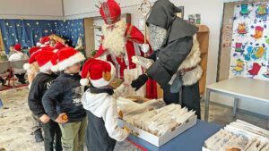 Am Nikolaustag herrschte große Aufregung an der Grundschule Unterharmersbach: Der Nikolaus hatte sich zusammen mit seinem Begleiter Knecht Ruprecht, auch unter dem Namen „Rubbelz“ bekannt, angekündigt. Der Höhepunkt des Tages war der gemeinsame Empfang in der stimmungsvollen Aula, die mit einem dekorierten Weihnachtsbaum und einer großen Krippe festlich dekoriert war.
