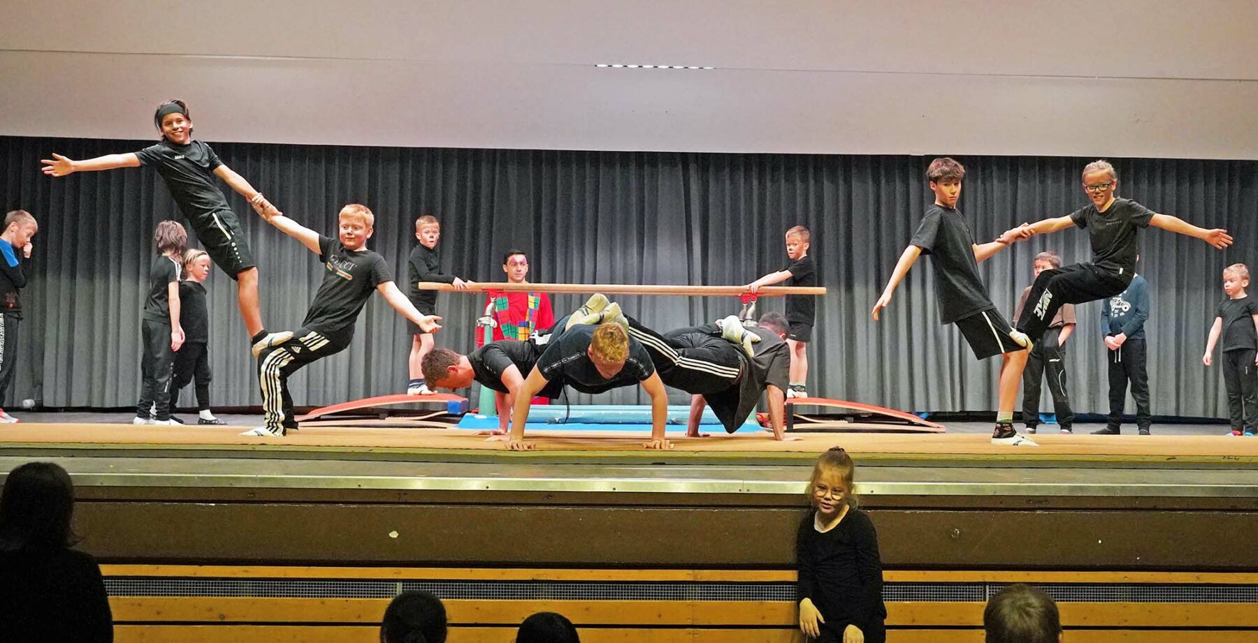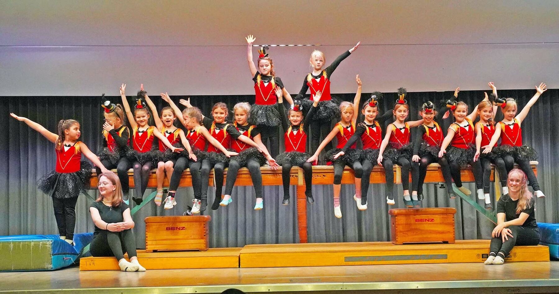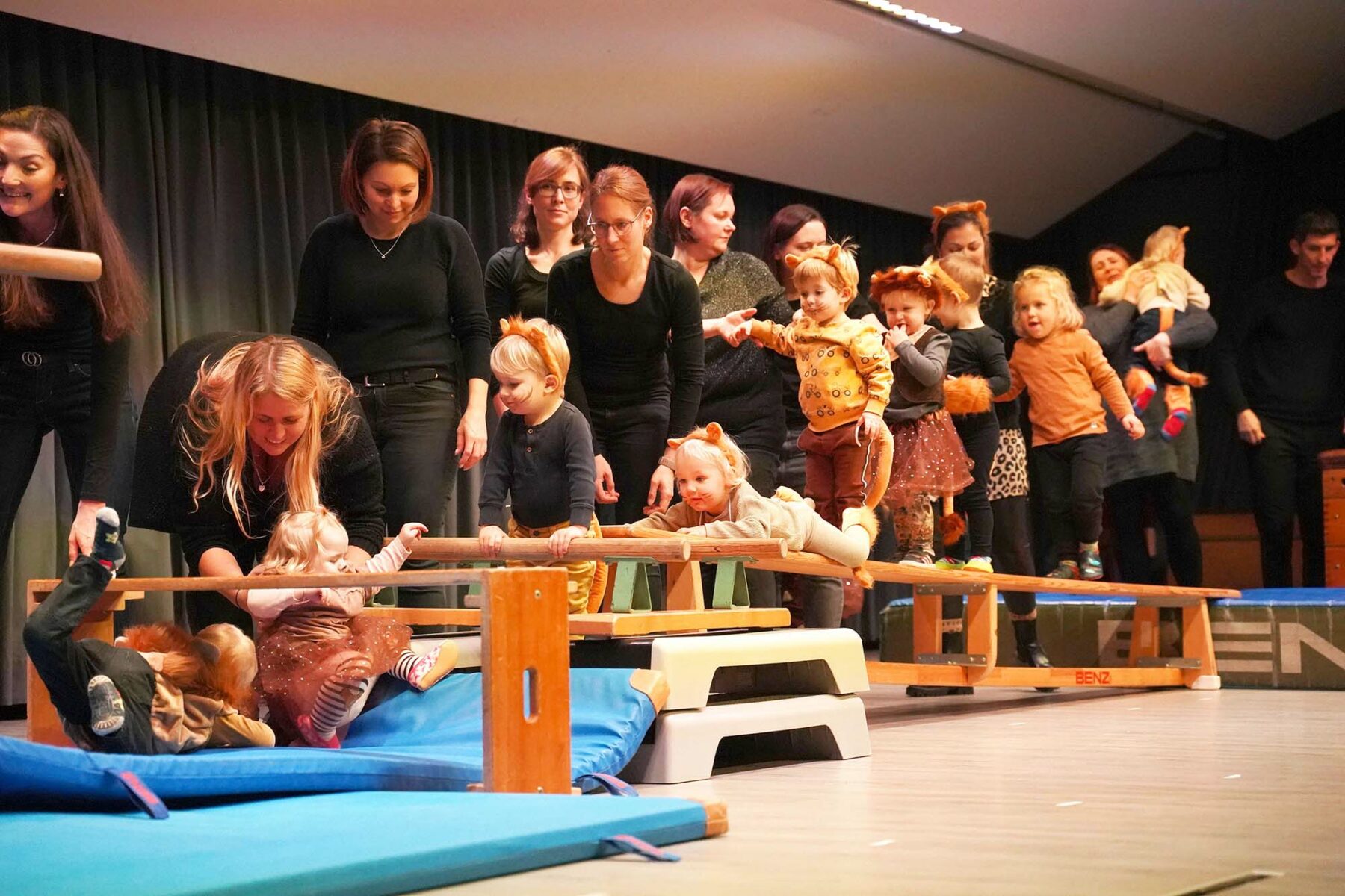 Das Programm begann humorvoll und abwechslungsreich mit Eric und Svenja als Moderatoren, die durch die Zirkusshow führten. Die kleinen Clowns, betreut von Lena, Valentin, Stella und Elli, sorgten für Heiterkeit. Anschließend zeigten die Zuckerfeen unter der Leitung von Katja einen tänzerischen Auftritt, der erst sanft begann und dann in ausgelassener Stimmung endete. Auch die „Zirkuspferdchen“ begeisterten das Publikum mit einer gekonnten Vorführung. Die Akrobaten von Elif, Lena und Lisa führten beeindruckende Kunststücke auf dem Schwebebalken vor. Für eine Überraschung sorgte eine Tanzeinlage, nach der es Popcorn regnete. Eltern und Kinder wurden bei der Darbietung der „Löwen“ gemeinsam aktiv und zeigten ihr Können. Mit viel Tempo brachte das „Security-Team“ Schwung auf die Bühne. Die „Zirkusaffen“ zeigten spektakuläre Einlagen an Ringen, Barren und am Boden. Den Abschluss bildete die Darbietung „Die Augen der Wildnis“.