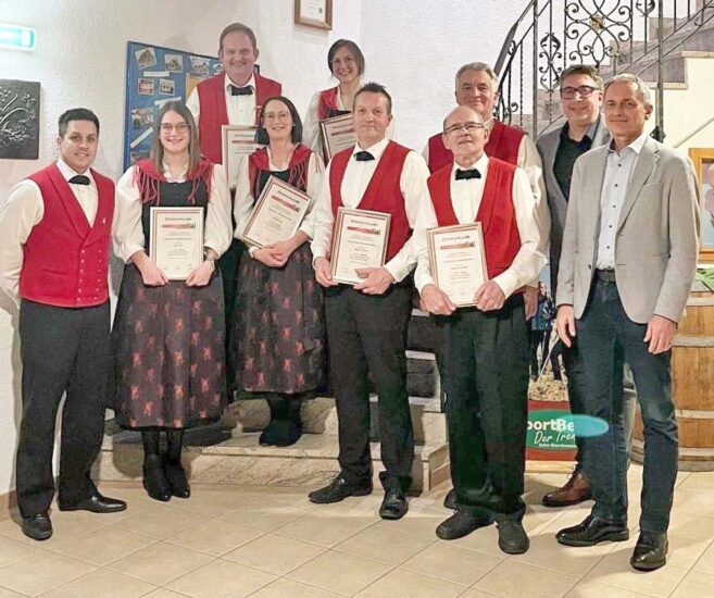 Foto: VereinNach der musikalischen Eröffnung durch die „Hombacher Dorfmusikanten“, einer Untergruppierung des Vereins, eröffneten die beiden Vorstände Steffen Stehle und Patrick Friedmann die Versammlung. Sie konnten neben den anwesenden aktiven und passiven Mitgliedern auch Bürgermeister Günter Pfundstein und Ortsvorsteher Jürgen Isenmann begrüßen. Tom Kienzle, der dritte Vorstand im Führungstrio, sendete Grüße vom Urlaub aus Übersee.