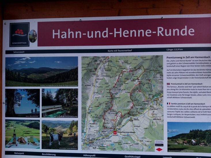 Der Premiumwanderweg wurde im Jahr 2015 eröffnet und ist seitdem als zertifizierter Schwarzwälder Genießer-Pfad ausgezeichnet. Die Stadt Zell am Harmersbach hat diesen rund 14 Kilometer langen Wanderweg gemeinsam mit dem Deutschen Wanderinstitut eingerichtet und zertifizieren lassen. Der Weg ist nach dem berühmten „Hahn und Henne“-Motiv der Zeller Keramik benannt.