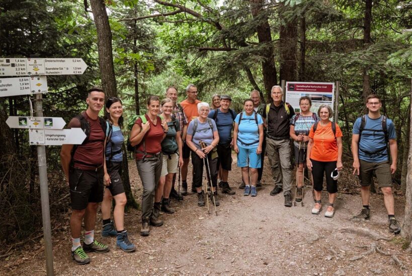 Zu den Highlights der Wanderung zählten die Edelfrauengrab-Wasserfälle, die idyllisch zwischen moosbewachsenen Felsen ins Gottschlägtal rauschen. Der Legende nach soll hier einst eine untreue Adlige in einer Höhle direkt neben dem Wasserfall ihr gewaltsames Ende gefunden haben. Heute ist der Ort vor allem ein beliebtes Naturziel. Danach wurde es sportlicher: Der Karlsruher Grat ist ein schmaler Felsenpfad mit leichten Kletterpassagen (der einzige Klettersteig im Nordschwarzwald), der Kondition und Trittsicherheit verlangt, dafür aber mit grandiosen Ausblicken über