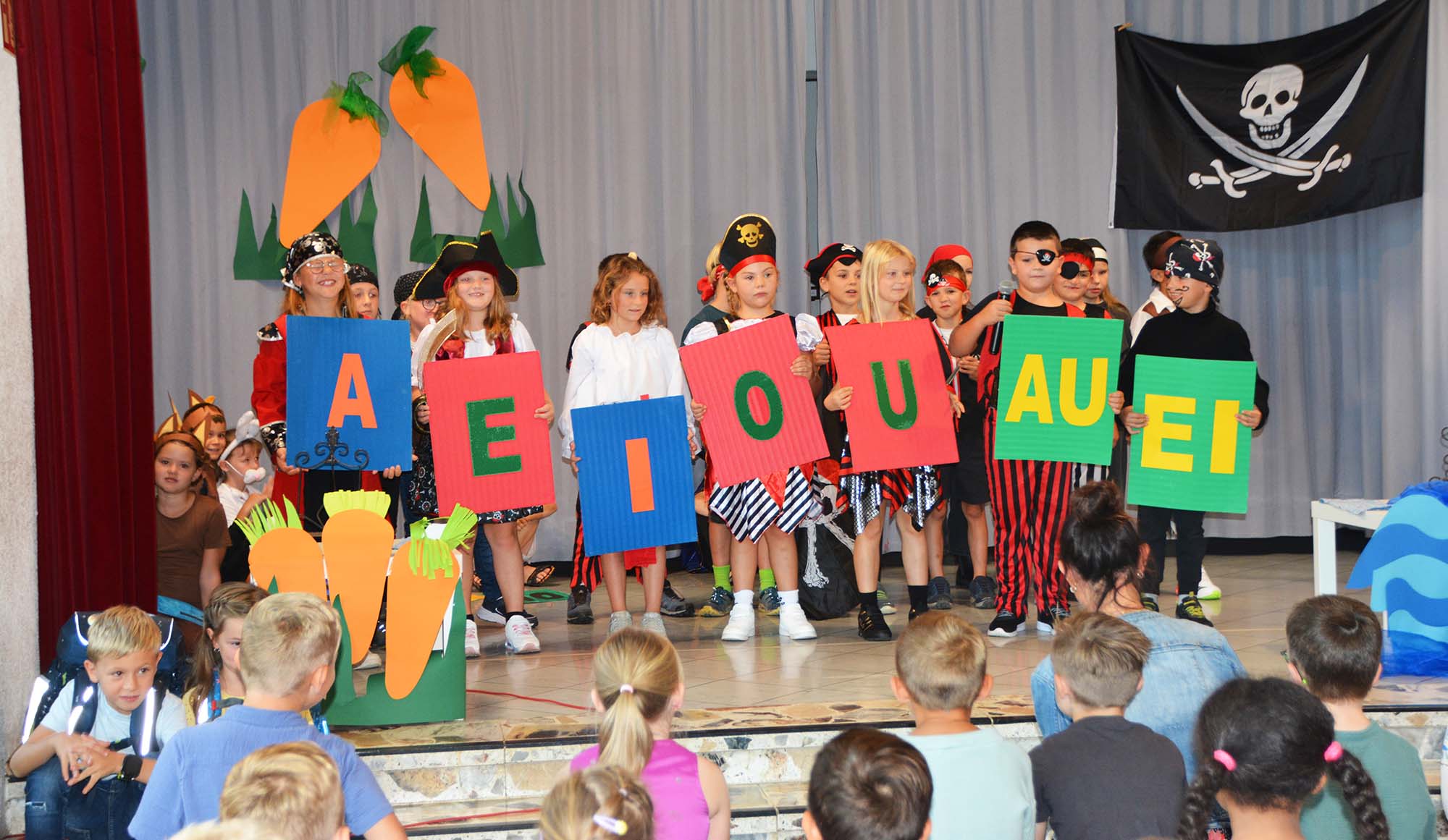Schwungvolle Einschulungsfeier an der Grundschule Unterharmersbach. Der Grundschulchor und die beiden zweiten Klassen gestalteten ein unterhaltsames Programm.