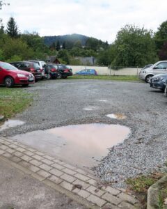 Beim Parkplatz der Fa. Ritter und dem Klosterparkplatz gibt es Probleme mit der Entwässerung. Hier soll Abhilfe geschaffen werden; die Zufahrten werden asphaltiert und eine neue Einteilung der Parkflächen erfolgt, um eine maximale Anzahl von Parkflächen zu erreichen. Damit wird begonnen, wenn der benachbarte Radweg fertig gestellt ist ( ca. 2026 ).