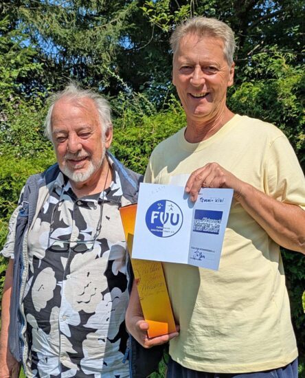 Anfang August feierte FVU-Ehrenmitglied Tommi Weng seinen 65. Geburtstag. Klar, dass ihm der FVU-Ehrenamtsbeauftragte Jürgen Ernst die Aufwartung machte und ihm die herzlichsten Glückwünsche des Vereins überbrachte.