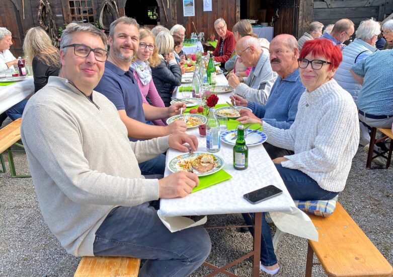 vergangenen Krippenausstellung zu begehen. Auf dem Vorplatz des Fürstenberger Hofs wurde in geselliger Runde zu Mittag gegessen, dazu gab es eine bunte Auswahl selbst gebackener Kuchen. Für das leibliche Wohl sorgte das Catering der Familie Schwarz vom Herrenholz.