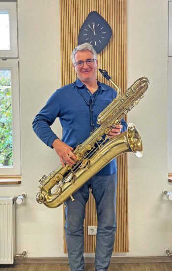 Manche sagen ja, dass ich jetzt endlich ein Instrument gefunden habe, das zu meiner Größe passt. Aber Spaß beiseite. Wir waren in unserem Verein eine Zeit im Tuba-Register unterbesetzt und so konnte ich das Fundament verstärken. Außerdem spiele ich ja auch noch Dixieland-Jazz, da gibt es viele Möglichkeiten für ein Bass-Sax. Ich sag mal so: Es ist ein schönes Spielzeug und macht mir riesigen Spaß!