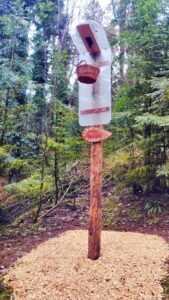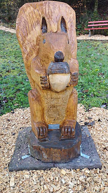 Besonderer Blickfang ist nun ein lebensgroßes Holz-Eichhörnchen am Eingang des Pfades, das als Fotopoint dient. Es wurde vom Wander- und Freizeitverein gespendet. Mit dem Ausbringen von Hackschnitzeln rund um die Stationen und auf dem Zugangsweg sind die diesjährigen Arbeiten abgeschlossen.
