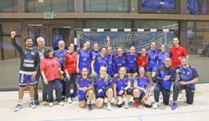 Nach der Pause verkürzten die Gäste Tor um Tor bis auf ein 17:17-Unentschieden, konnten jedoch nie in Führung gehen. Mit einer Auszeit kurz vor dem Ende stellte Trainer Peter Hildebrandt die Mannschaft nochmal neu ein und trotz Unterzahl konnte man den Sieg einfahren. Neun verschiedene Torschützen sprechen für eine tolle Teamleistung, beinahe die Hälfte der Tore steuerten die „Oldies“ Nicole Charton und Dorothee Hirt bei. Glückwunsch ans Team und an die drei Trainer Peter Hildebrandt, Markus Gässler und Manuel Brosemer.