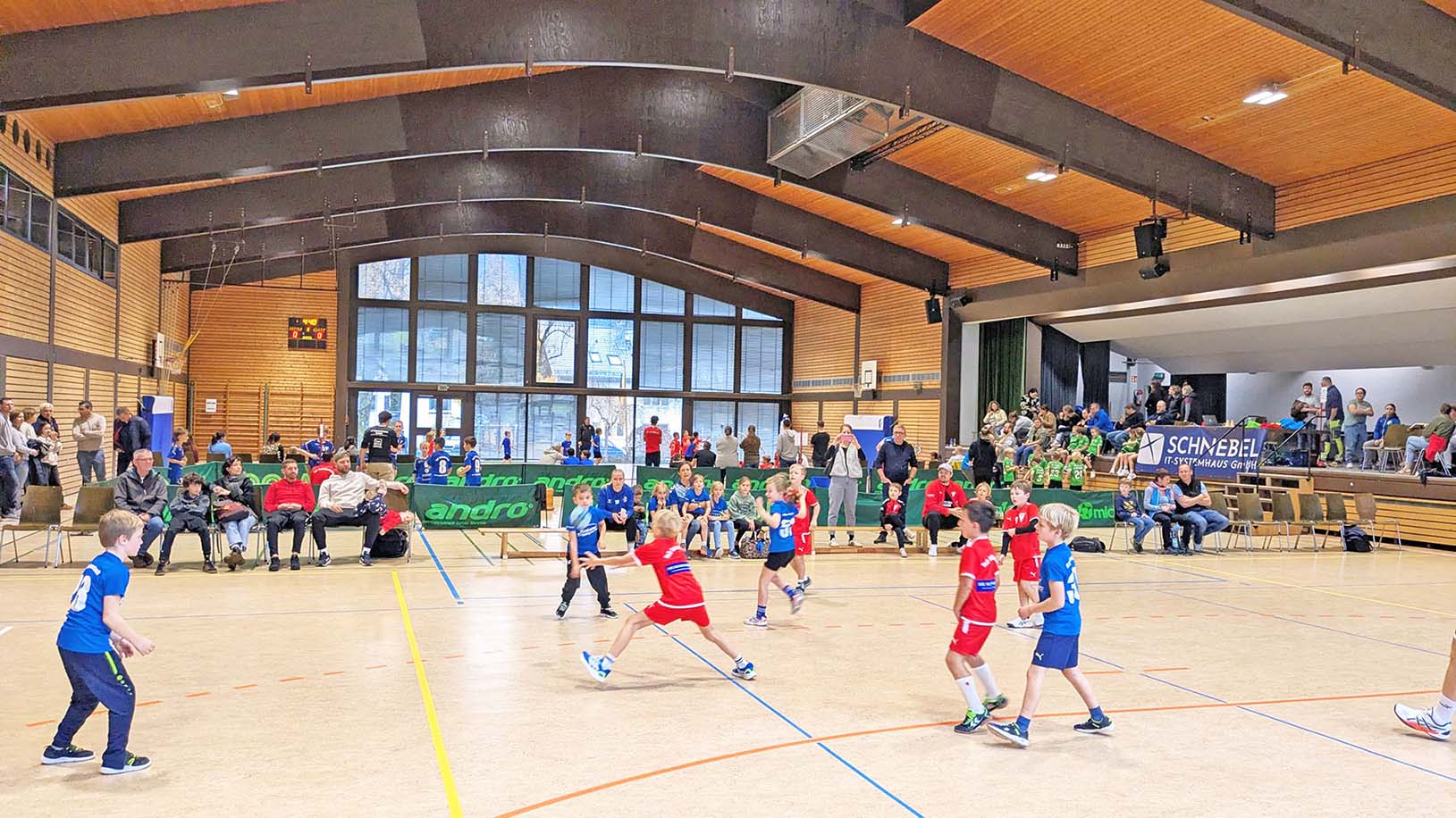 Viele Zuschauer sehen ein gelungenes F-Jugendturnier und zwei Siege.