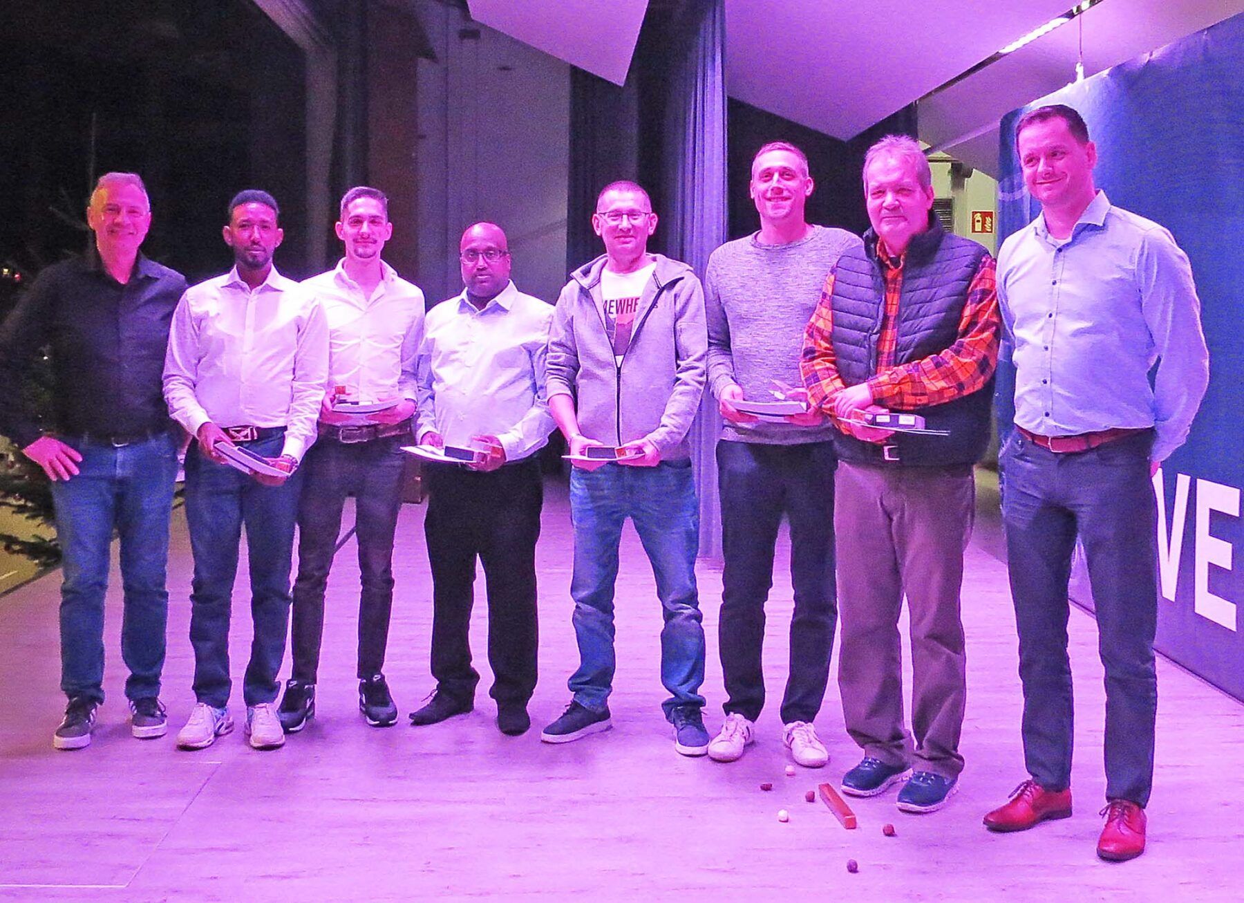 Für 10-jährige Betriebszugehörigkeit wurden geehrt: Waldemar Axt, Mario Rack, Eduard Fessler, Georg Huber, Bartosz Maselko, Thomas Rücker, Zijad Mujadzic, Steffen Ziegenhorn, Ali Ahmadi, Nimalakanthan Saravanamuthu, Saleh Mohammed Salman, Sebastian Baumann, Raphael Schmidt, Rudolf Pauli, Ertugrul Congöz, Waldemar Rohrbach, Karsten Schuhmacher und Frank Diener.