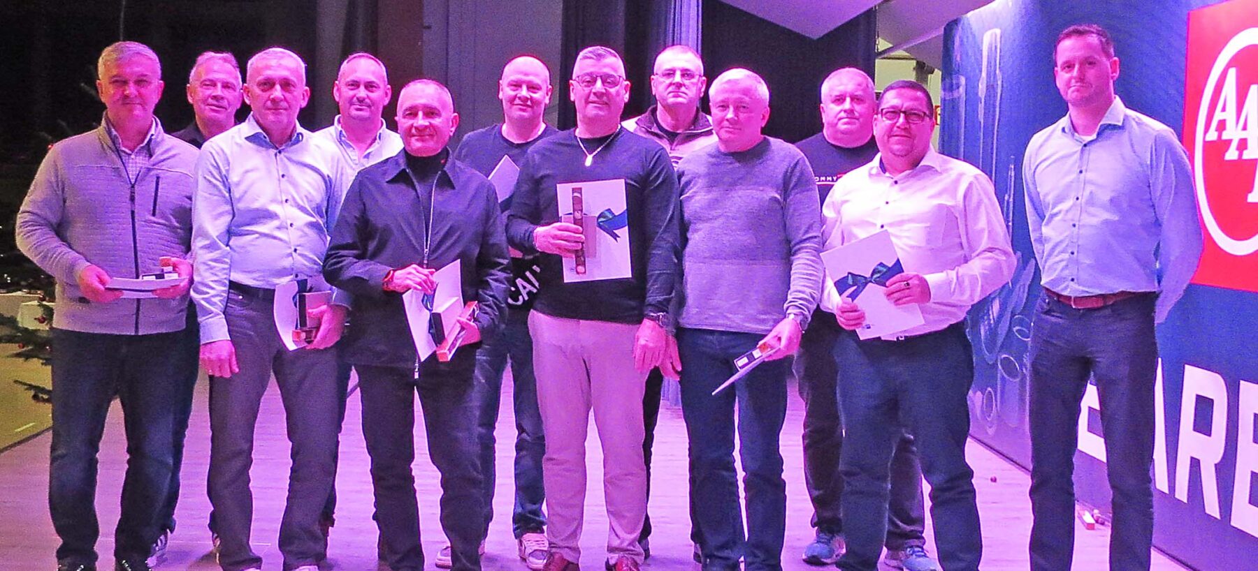Ehrungen und Verabschiedungen in den Ruhestand bei der Weihnachtsfeier von AAM Metal Forming. Werksleiter Christian Vollmer spricht von Herausforderungen durch steigende Kosten, unsichere Märkte und Wettbewerbsdruck.