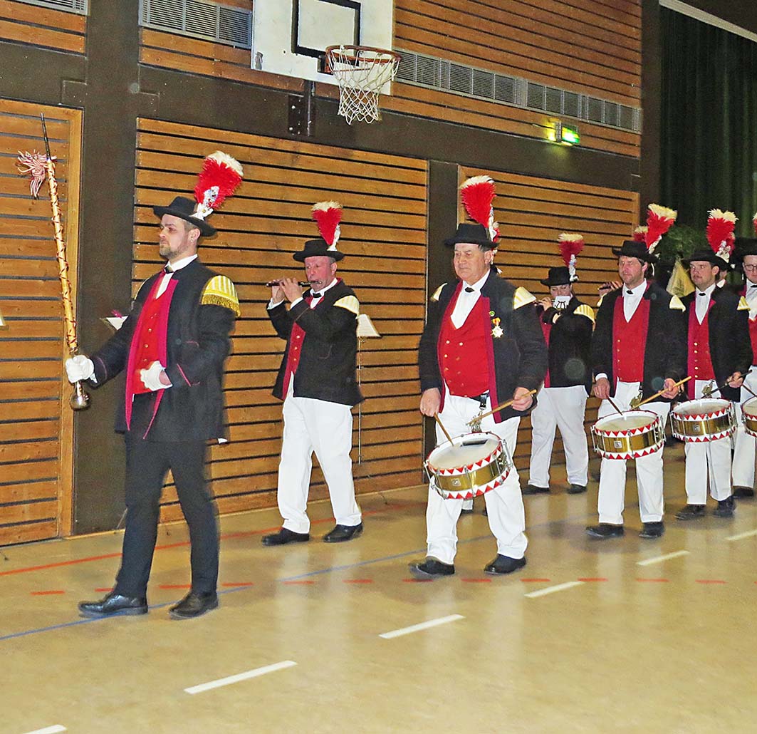 Foto: Gisela AlbrechtÜber ein überaus zufriedenes Publikum konnte sich Hauptmann Marcus Bohnert beim traditionellen Theaterabend freuen. Die bewährte Theatergruppe zeigte ihr komödiantisches Talent. Viel Lokalkolorit gab es beim Thema der „verfeindeten Lager Zell und Unterharmersbach“, die sich heftige Wortgefechte zur Lage der Wallfahrtskirche und der Heiligen Maria darin lieferten.