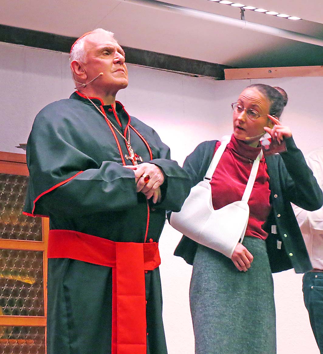 Die Rolle des Ordinariats-Direktors Matthäus ist Alfred Willmann auf den Leib geschrieben: Überheblich, herablassend zum Personal, anspruchsvoll und auf die Moral pochend. Doch vor der resoluten Pfarrsekretärin beginnt er zu kuschen.
