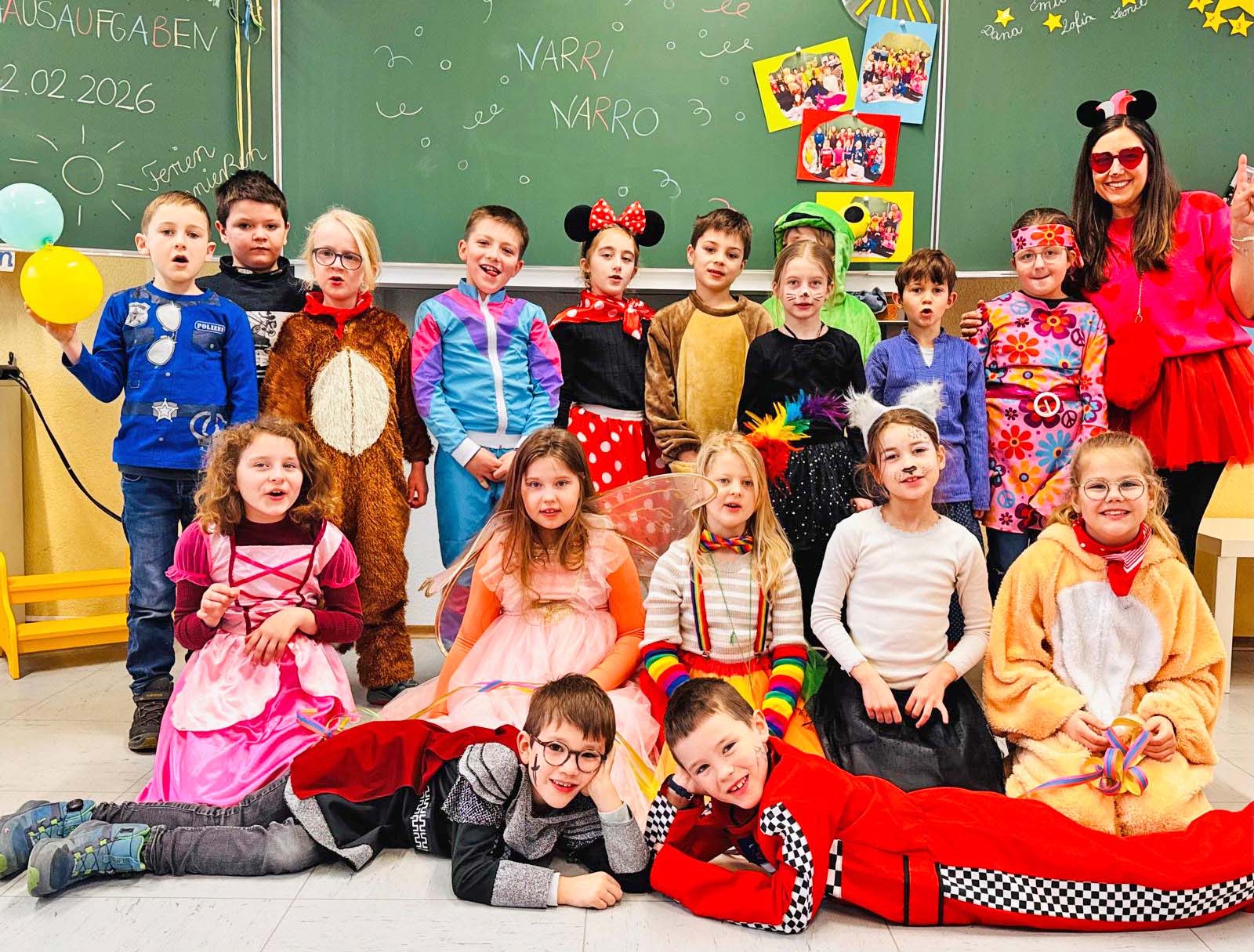 Auch die Mottotage sorgten für Begeisterung im ganzen Schulhaus: „Kunterbunt“, „sportlich“ und „tierisch gut“ brachten Farbe, Kreativität und jede Menge gute Laune in die Klassen. Es wurde gebastelt, gesungen, und es wurden närrische Sprüche geübt.