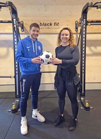 FVU-Spielführer Christian Gieringer bringt sich nach seiner Kreuzbandverletzung im neuen Zeller Fitnessstudio „Black Fit“ im Steinenfeld 20 in Form, um zur neuen Runde als tragende Säule der FVU-Mannschaft wieder angreifen zu können. Als zusätzliche Motivationsspritze für Gieringer spendete Inhaberin Alisa Eble den Spielball für das FVU-Heimspiel am kommenden Sonntag um 15 Uhr gegen Dinglingen. Gieringer ist nicht der einzige FVU-Spieler, der im „Black Fit“ trainiert und neben den Kraftübungen an den Geräten auch die Welt von Jumping, Indoor-Cycling und Pilates kennenlernt. Auch weitere FVUler halten sich dort in Form. Überdies hat Alisa Eble in der Saisonvorbereitung zwei Trainingseinheiten beim FVU geleitet und den Spielern gezeigt, wie sie außerhalb der üblichen Bahnen ihren Körper mit Kräftigungsübungen stärken können.