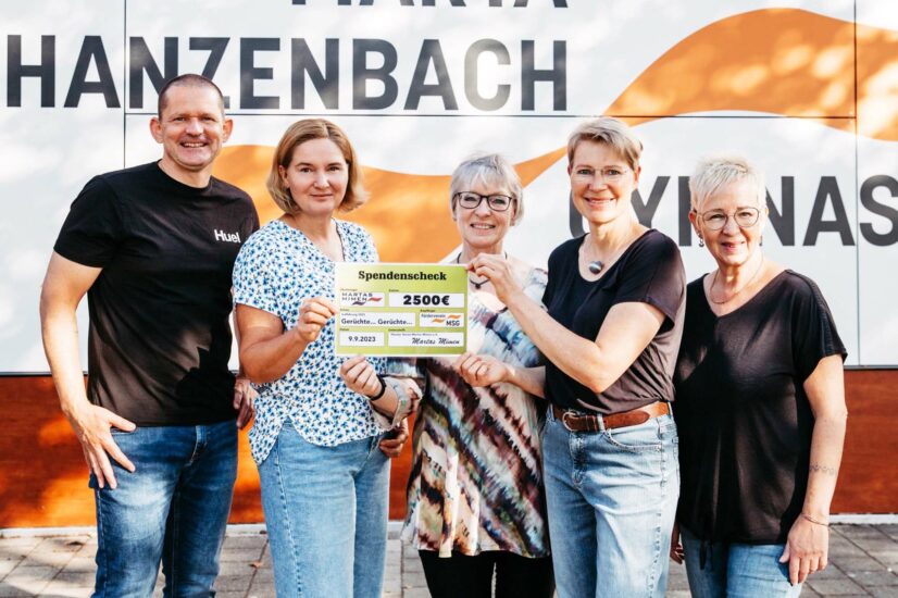 Nach den drei überaus erfolgreichen Aufführungen „Gerüchte, Gerüchte“ der Theatergruppe „Martas Mimen“ in der Stadthalle konnte nun ein Scheck in Höhe von 2500 Euro an den Förderverein des Marta-Schanzenbach-Gymnasiums übergeben werden.