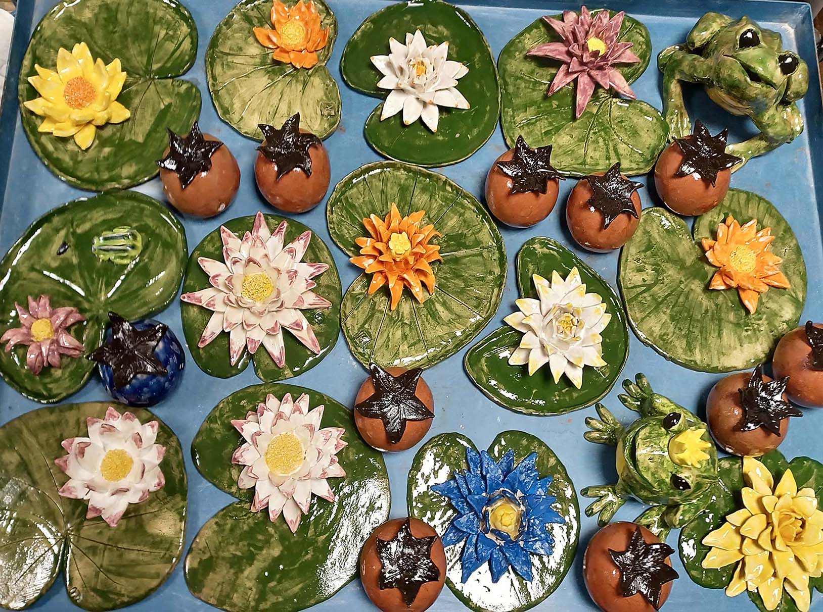 Farbenfrohe Seerosen, die ganz ohne Teich auskommen, und viele weitere kreative Töpferarbeiten erwarten die Besucher beim 27. Keramikmarkt der Hobby-Keramikerinnen des Fördervereins Marta-Schanzenbach-Gymnasium e.V. Ob dekorative Einzelstücke oder praktische Keramik für Haus und Garten – das Angebot ist vielfältig und liebevoll gefertigt.