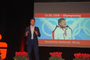 »Kämpfen lohnt sich«, zeigte sich Matthias Steiner überzeugt. Wichtig sei es dabei, sich realistische Ziele zu setzen. Schon mit 12 Jahren habe er das Ziel gehabt, Gewichtheber zu werden. Bis er am 19. August 2008 als Olympiasieger der gefeierte Held gewesen ist, musste er allerdings einen sehr harten Weg gehen. Tiefpunkte seien die Diagnose Diabetes Typ 1 – »da war ich plötzlich ein kranker Mann« – und der Unfalltod seiner damaligen Frau gewesen. Mehrmals sei er vor der Frage gestanden: »Aufhören oder weitermachen?«