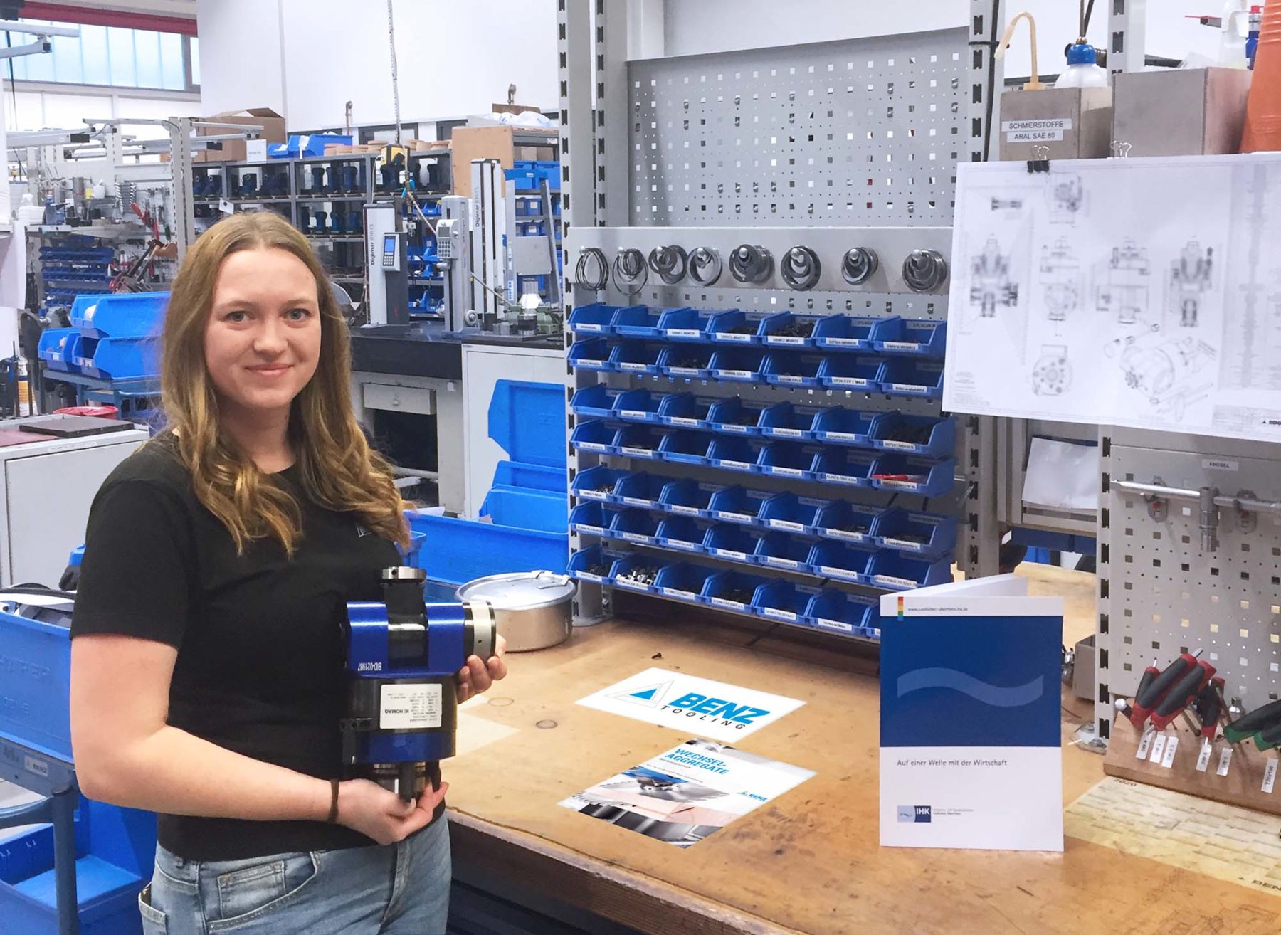 Seit ihrem erfolgreichen Abschluss arbeitet Christina Kienzle im Fachbereich »Montage«, wo sie Winkelgetriebe aus Baugruppen und Einzelteilen montiert. Mit dem Preisgeld möchte sie sich einen weiteren Traum erfüllen und eine Elektrofachkraft-Schulung sowie ein Auslandspraktikum absolvieren. Ihr Ausbilder ist sich sicher, dass ihr das erfolgreich gelingen wird: »Christina ein hervorragendes Beispiel dafür, was Frauen in technischen Berufen leisten und erreichen können.«