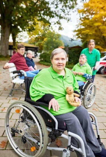 In der Heilpädagogischen Tagesgruppe in der „Villa Magdalena“ erhalten Menschen mit einem hohen Unterstützungs- und Pflegebedarf eine tagesstrukturierende Begleitung. Der angrenzende Park wird regelmäßig genutzt, um unter schattenspendenden Bäumen zu essen, Kaffee zu trinken oder einfach nur die Natur zu genießen.