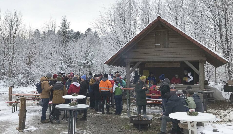 Die Sängerinnen und Sänger des Chors „Liederkranz“ Welschensteinach laden am Sonntag, 10. Dezember 2023, ab 10.30 Uhr an die Kambacher Hütte ein zu einer Wandereinkehr am Lagerfeuer mit Glühwein, Punsch, Bier und Anti-Alkoholischem, Grillwurst im Weck sowie Kaffee und Kuchen. Neu im Angebot sind Heißgetränke im Bio-Thermobecher.