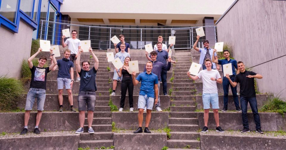 Interessant sind auch die weiteren Pläne der Abschlussschüler. Die klassische Karriere am TG führt zu einem Studium Plus der Fächer Maschinenbau und Mechatronik. Auch ein Duales Studium Informatik und Industrielle Automatisierung ergibt sich aus dem Profilfach Mechatronik und für die Ausbildung zum Technischen Produktdesigner liefert das TG ebenfalls gute Grundlagen. Einer der Abiturienten tritt eine Ausbildung zum Elektroniker an. Ein Schüler beginnt eine Ausbildung zum Fachinformatiker und zwei weitere möchten das Fach Informatik studieren. Ebenfalls zwei Schüler werden ein Lehramtsstudium antreten. Aber auch die wirtschaftliche Richtung kann nach einer Ausbildung am TG eingeschlagen werden und sie ist sogar vergleichsweise stark vertreten, denn drei Schüler planen ein Studium im Fach Wirtschaftswissenschaften. Weiter befinden sich ein zukünftiger Architekt und ein Bauzeichner unter den Abiturienten und einer der Schüler hat sich für eine Karriere bei der Polizei entschieden.