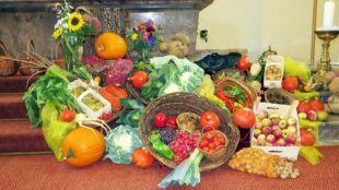 Am Sonntag feierte die katholische Kirchengemeinde Erntedank. Das Familiengottesdienstteam hat mit vielen Erntegaben den schönen Erntedank altar dekorativ aufgebaut.