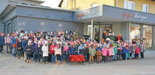 Rund 140 Grundschüler zogen am Mittwoch in Begleitung der Lehrerschaft bei sonnigem und kaltem Winterwetter durch Biberach.